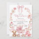 Convite Para Chá de fraldas Floral Coquette, Arco Rosa, Carruagem De Bebê Cor-De-Rosa, Convite Para Chá de fraldas, Chá de fraldas De Urso De Teddy Editável