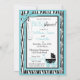 carruagem de bolinhas em preto-e-branco doce com arco 3D visual e apartamentos sobre impressões de zebra e bolinhas e cartão de convite para chá de fraldas de cor de sotaque turquesa.