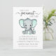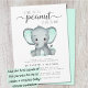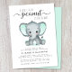 Um chá de fraldas bonitinho e neutro por correio com "A Sweet Little Peanut Is On Your Way" escrito em uma mistura de tipografia moderna das cinzas moles e um roteiro de na moda, e uma aquarela verde de menta pastel de um elefante bebê. Adicione o nome da mãe e o chá por e-mail em uma simples tipografia de cinza.
