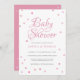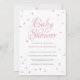 Apresentando um roteiro cor-de-rosa e bonito corações de amor cor-de-rosa espalhados em torno de seus detalhes personalizados, definidos em texto elegante neste convite para chá, chá de fraldas ou casal. Projetado por Thisnotme©