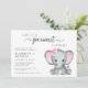 Uma menina bonita casal um convite para o chá com "A Sweet Little Peanut Is On Her Way" em tipografia de cinza mole e um roteiro de 'swash' na moda e uma aquarela rosa pastel de um elefante bebê. Adicione os nomes da mãe e do pai e os detalhes do chá em uma simples tipografia de cinzas moderna.