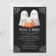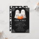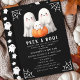 Escute um boo, um pequeno fantasma está vencido! Nosso adorável convite para o chá de fraldas de Halloween apresenta fantasmas pais de aquarela e seu fantasma bebê em uma abóbora contra um fundo preto. Perfeito para uma celebração doida! Você pode personalizar isso ainda mais clicando no botão "PERSONALIZAR". Correspondência de Itens em nosso compro para um tema completo de festa.