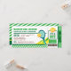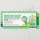 Jogo. Conjunto... Combine! Este convite de festas verde amarelo de tênis apresenta um raquet de tênis e uma bola de tênis em um design de permissão de passagem de entrada admite um ticket. Todo o texto é editável, você pode editar este tíquete de torneio de tênis para o chá de fraldas desportivo, festa de aniversário tênis, festa de torneio de tênis e muito mais!