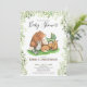 Celebrar o pequeno a caminho com este convite para casais de chá de fraldas de madeira. Este adorável convite ao chá de fraldas conjunto de animais da floresta florestal apresenta um animal pintado manualmente com aquarela, olhando para uma carruagem de bebê verde, um novo nascer está a caminho, celebrado por todos os animais da floresta, urso-mãe, ouriço, coelho, guaxinim, raposas, veado de bambi sentado sobre uma relva verde-luxuosa. A parte de trás apresenta lindas folhas verdes de aquarela e animais da floresta. Esta ilustração de aquarela temática rustical da floresta é perfeita para o seu chá de fraldas temático animal, casal da floresta, convite para chá de fraldas de bebê temático da floresta, chá de fraldas de madeira ou festa de chá de fraldas ao ar livre.