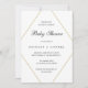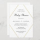 Casais modernos convites para chuveiros de bebês apresentando um simples design com seus detalhes de evento dentro de forma falsa de diamante geométrico em ouro, sobre um fundo branco. Um design minimalista que ainda aparece como chic e na moda. Esta design neutra de gênero funciona para um rapaz ou um chá de fraldas de raparigas.