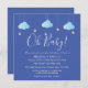 Apresentando nuvens azuis e estrelas ouros bonitinhas em cordas, em um fundo azul, este chá de fraldas de casais ou convite de borrifar é perfeito para todos os pequenos que estão a caminho. Adicione seus detalhes de celebração em branco para criar o convite perfeito. Projetado por Thisnotme©