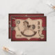 Design de rusticidade ocidental com cavalo de balanço, corda, crachá do xerife e elementos de pontos de sela para um cartão de convite de chá de fraldas.