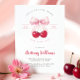 Celebre o chá de fraldas mais doce com este Convite para Chá de fraldas de Cereja de Arco Rosa. Apresentando cerejas a aquarelas brilhantes e um delicado arco cor-de-rosa, essa design coqueteira expele encanto e feminilidade. A paleta rosa e vermelha macia e o roteiro elegante o tornam perfeito para um na moda e chá de fraldas alegre para uma menina.