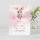 Design para o Chá de fraldas de inverno de meninas apresenta pequenas renas cor-de-rosa em uma floresta de neve de conto de fadas. A letra do roteiro diz "Oh veado". Não hesite em contactar-me para obter itens ou personalizações correspondentes. Rosas de cor Bebê ©