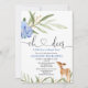 Convites Chá de fraldas de cervo azul-floral verde-floral