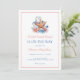 Garota costeira que decorava com conchas e texto personalizável para um chá de fraldas. Rosa, azul e branco.