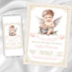 Namorados de convite para chá de fraldas com a doce menina cherub e corações cor-de-rosa num fundo cardíaco. Basta adicionar os detalhes do evento.