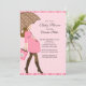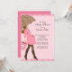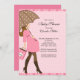 Comece seu chá de fraldas de bebê com nossa mãe moderna e brunette segurando um guarda-chuva castanho e cor-de-rosa com bolinhas cor-de-rosa. Visite nosso compro para uma grande seleção de convites para um chá de fraldas de bebê.