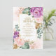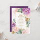 Este adorável convite para chás de fraldas apresenta flores rosadas e roxas cor-de-água rosa e folhas verdes tropicais.