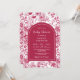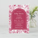 Este belo e elegante convite para chás de fraldas apresenta um antigo padrão rosa Chinoiserie. O texto combina o script manuscrito e as fontes serif para uma aparência na moda e moderna. Isto é perfeito para um primavera ou chá de fraldas de jardim de verão.