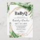 Jogando um churrasco para celebrar o chá de fraldas dos casais. Estes incríveis convites para bebês BaByQ apresentam uma estrutura geométrica de ouro enfeitada com folhagem verde tropical com sotaques de ouro, criando uma vibração botânica de verão. A elegante modelo inclui a escrita da caligrafia e é fácil de personalizar.