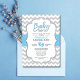 Azul pastel, cinza (cinza), padrão de cinzas brancas, convites para chás para bebês. Pequenos pés de bebês. Trendy pincel com letras de script. Faux Glitter prata. Barato, mas não de aparência barata! Perfeito para qualquer festa temática de chá. Estas placas de modelo de convite podem ser editadas com suas informações. Obtenha adesivos favoritos.