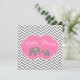 Um convite de chá de fraldas para a menina do elefante. Um padrão de cólon cinza, quadro cor-de-rosa e um par de elefantes para bebês-mãe, está representado neste convite para o chá de fraldas moderno. Um papinho e uma gracinha. Personalize facilmente o seu chá de fraldas!