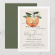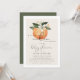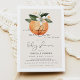 Este convite para o chá de fraldas "A Little Cutie is on way" apresenta flores brancas de cor d'água laranja e combinação simples de cor bege e branco. Essa design neutra de gênero é perfeita para qualquer chá de fraldas com tema de fruta cítrica.