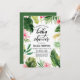 Um convite divertido e colorido de chá de fraldas de código que inclui o hibisco da aquarela, as folhas de palma, as folhas de banana e outros sotaques tropicais. Este convite personalizável é perfeito para chás de fraldas de verão e temas tropicais.