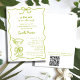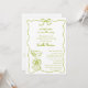 Apresentando o "Tini One on the Way" Funky & Whimsical Dirty Martini Chá de fraldas Invitation with QR Code, em verde e branco - Uma tendência e um convite lúdico para celebrar a futura mãe! Apresentando um quadro rabugento com um charmoso arco, este design é acentuado com um martini sujo desenhado à mão, com duas azeitonas no canto inferior. O fundo branco limpo permite que a combinação de scripts escritos à mão e fontes de blocos funk brilhe, criando uma vibração divertida, mas elegante. Perfeito para definir o tom de um chá de fraldas inesquecível com amigos e familiares. Facilite aos amigos e familiares a visualização do registro do bebê atualizando o Código QR na parte traseira do convite. Personalize facilmente este modelo com os detalhes do seu evento. Também disponível como download digital instantâneo para compartilhamento fácil via e-mail, texto ou mídia social.