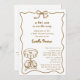 Apresentando o "Tini One on the Way" Funky & Whimsical, Desenhado à Mão Espresso Martini, Convite ao Chá de fraldas com o Código QR - Uma tendência e um convite brincalhão para celebrar a futura mãe! Apresentando um quadro rabugento com um charmoso arco de coquete, este design é acentuado com um martini espresso desenhado à mão no canto inferior. O fundo branco limpo permite que a combinação de scripts escritos à mão e fontes de blocos funk brilhe, criando uma vibração divertida, mas elegante. Perfeito para definir o tom de um chá de fraldas inesquecível com amigos e familiares. Facilite aos amigos e familiares a visualização do registro do bebê atualizando o Código QR na parte traseira do convite. Personalize facilmente este modelo com os detalhes do seu evento. Também disponível como download digital instantâneo para compartilhamento fácil via e-mail, texto ou mídia social.
