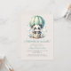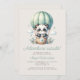 Este chá de fraldas bonito apresenta um doce panda de aquarela em um balão de ar quente verde-menta, acima das palavras "Aventura aguarda!" em um roteiro verde-menta. Personalize o texto com o nome da futura mãe no script e os detalhes na fonte sans serif em um plano de fundo bege.O lado inverso fornece espaço para a rifa de fralda, livros para bebê e detalhes do registro, junto com um conveniente código QR que os convidados podem digitalizar para visitar o registro. Ideal para um chá de fraldas neutro em termos de gênero.