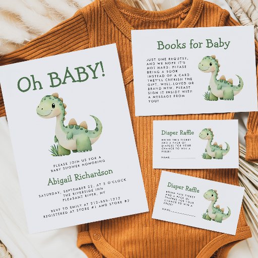 Cute Green Watercolor Dinosaur Baby ShowerCriado por Akhates Designs