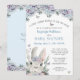 Coelhinho de madeira de cor branca, borboletas, híbridos e flores silvestres em roxo de ameixa e design de azul para um chá de fraldas para a futura mãe (ou para os futuros pais como o texto do convite pode ser editado). Entre em contato com o designer por meio do Zazzle Chat ou makeitaboutyoustore@gmail.com se você quiser que este design seja modificado, em outro produto ou quiser coordenar itens.