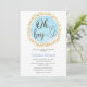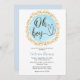 Apresentando nosso incrível convite de Chá de fraldas azul e Dourado "Oh Boy"! Essa elegante design apresenta um sofisticado círculo azul no centro, perfeitamente enquadrado com sotaques de ouro espumantes. Os brilhos dourados sombrios adicionam um toque de glamour e festividade, fazer este convite ideal para celebrar a chegada do seu bebê.