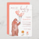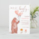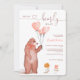 A ilustração do ursinho branco e bonito com balões cor-de-rosa pastel e chá de fraldas de flores com uma tipografia de fontes elegante, dizendo que podemos esperar muito.