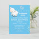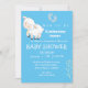 Carneiro branco doce com fundo azul. Lamb tem um toque de azul que é perfeito para garotos. Adicione os detalhes do seu chá de fraldas para um convite de chá.