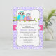 Convites Chá de fraldas de Coruja-Feira-Fita e Roxo