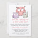 Um convite de chá cor-de-rosa com um trocadilho bonitinho de coruja "Coruja Esperando por uma Garota Nova". Personalize os detalhes do evento. Três corujas sentadas seguidas, este adorável convite vai dar o tom para um chá de fraldas perfeito.
