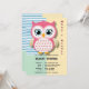 Uma doce e simples coleção de convites para bebês de coruja rosa, com tons de pastel macio de azul, amarelo e rosa. Com padrões divertidos e um adorável design de coruja, a coleção é perfeita para celebrar uma menina, um menino ou um chá neutro em relação ao gênero. Leve, encantador e fácil de amar. Se você precisar de outro produto ou personalização correspondente, por gentileza, envie uma mensagem via Zazzle.
