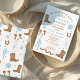 Chá de fraldas de cowboy castanho moderno Convite para de cowboy azul-acastanhado e branco chá de fraldas de temas ocidental, silvestre, meridional ou cowboy apresentando um título ao estilo ocidental, botas de cowboy, cacto, crânio, sapato de cavalo e muito mais sobre um fundo branco.