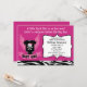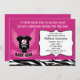 Este divertido convite para um chá de fraldas para uma menina apresenta uma camiseta preta com um crânio e ossos cruzados sobre um fundo roxo.