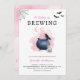 Adicione um toque de charme assustador à sua celebração do outono com este Convite para Chás de fraldas de Halloween "A Baby is Brewing", Cute "A Baby is Brewing"! Apresentando ilustrações moles de aquarelas de um caldeirão borbulhante, uma vela brilhante, um corvo místico, e delicada névoa rosa, esta design reúne a magia do Halloween e a elegância moderna. Acentuado com morcegos voadores, lua crescente, e teias de aranha, é perfeito para um chá de fraldas de outubro com uma vibração brutal e espirituosa. Totalmente personalizável e ideal para comemorar um pouco se reproduzindo a tempo de uma estação assustadora!