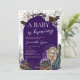 Celebrar o Dia das Bruxas com este Chá de fraldas de Halloween de Roxo Gótico. A design apresenta um arco roxo de rosas e morcegos, que se chama " e morcegos", acompanhado por um caldeirão borbulhante e um adorável gato preto. Os tons roxos ricos adicionam uma vibração mística e gótica, fazer o convite perfeito para uma celebração assustadora, mas elegante. BBS764