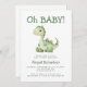 Este chá de fraldas bonito apresenta um dinossauro verde a aquarela abaixo das palavras "Oh BABY!" na fonte de impressão a verde. Personalize o texto com o nome da futura mãe em verde e os detalhes na fonte serif das cinzas de carvão.
