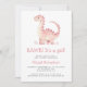 Este belo convite para o chá de fraldas apresenta um dinossauro cor-de-água rosa acima das palavras "RAWR! É uma Garota!" em letra de impressão rosa. Personalize o texto com o nome da mãe-para-estar em cor-de-rosa e os detalhes na fonte serif de cinzas de carvão.