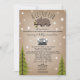 Um chá de fraldas por e-mail apresentando uma ilustração de um ursinho bebê soltando em um galho de árvore cercado por estrelas com poema original. Ilustração de montanha e árvores no fundo. Personalize o texto. O fundo é inspirado no estoque de papelão.