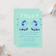 Um Unicórnio Bonito Gira 2 Bebês, Convite Para Chá de fraldas. O design tem dois unicórnios azuis fofinhos para gêmeos. O fundo é azul de menta com pontos azuis.