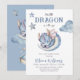 Celebre o bebê que vai ser nascer com este convite de conto de fadas encantado, temido pelo livro de histórias, em cores azuis, com livros, dragões e nuvens para o seu Chá de fraldas Little Dragon Boy