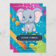 Convites Chá de fraldas de Elefante Azul Colorido Moderno