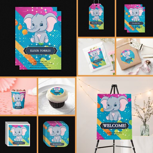 Modern Colorful Blue Elephant Baby ShowerCriado por Elixir Torres