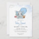 Convites Chá de fraldas de Elefante Azul Dusty com Cores de