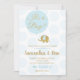 Convites Chá de fraldas de elefante azul e Dourado