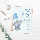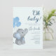 Convites Chá de fraldas de Elefante Bebê Cinto Azul