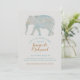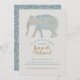 Chá de fraldas Boho Style Convite com Elefante padronizado. Bonito paleta de cores em cinzas azuis, ouro, bronzeado e cinzas. Fácil de personalizar e personalizar. Design pelo Emporium de Jenn.